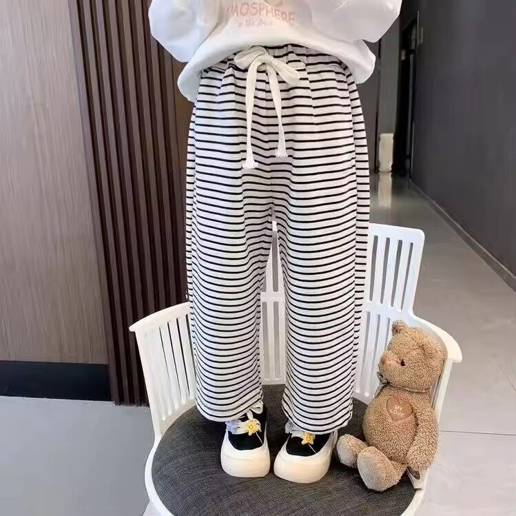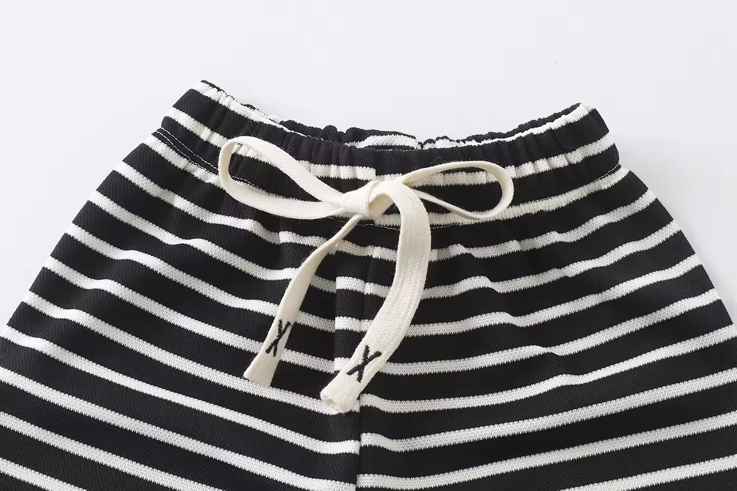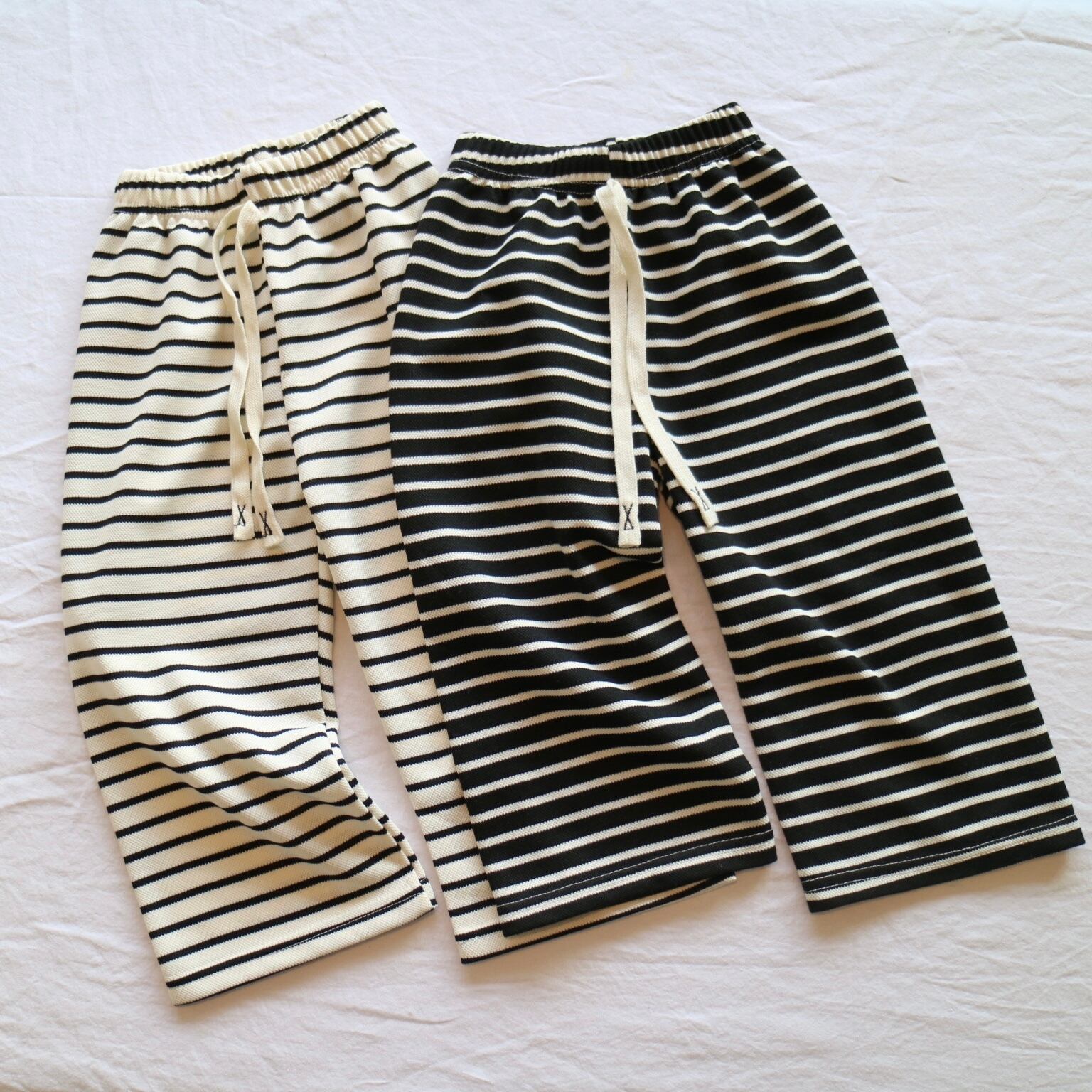 薄手の素材感で夏にも履きやすいボーダーパンツ