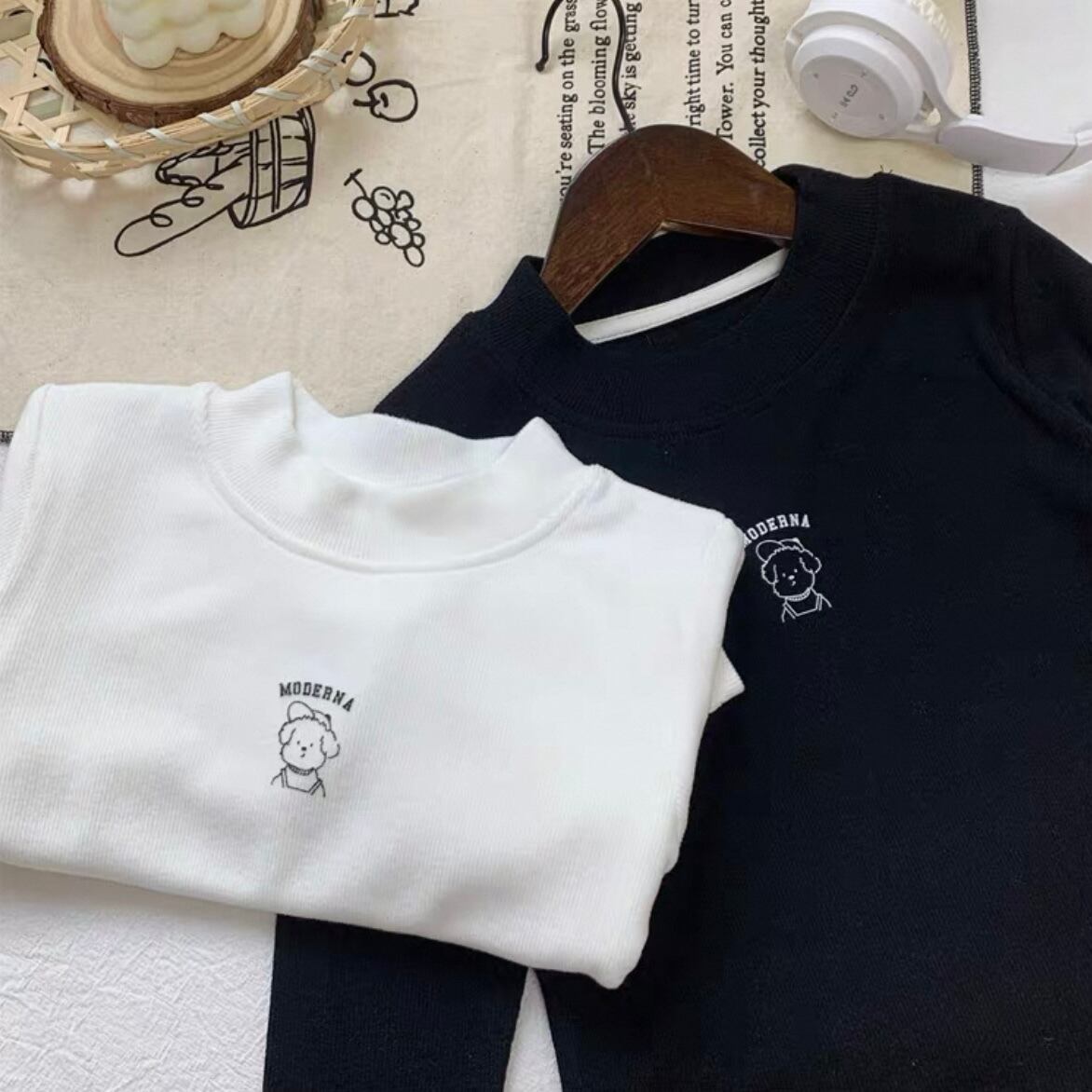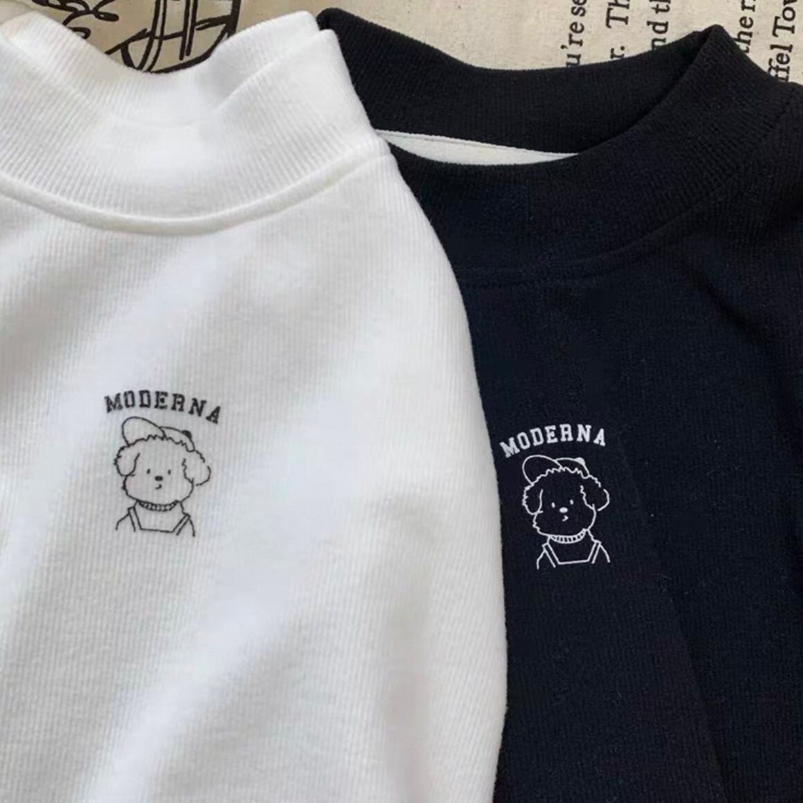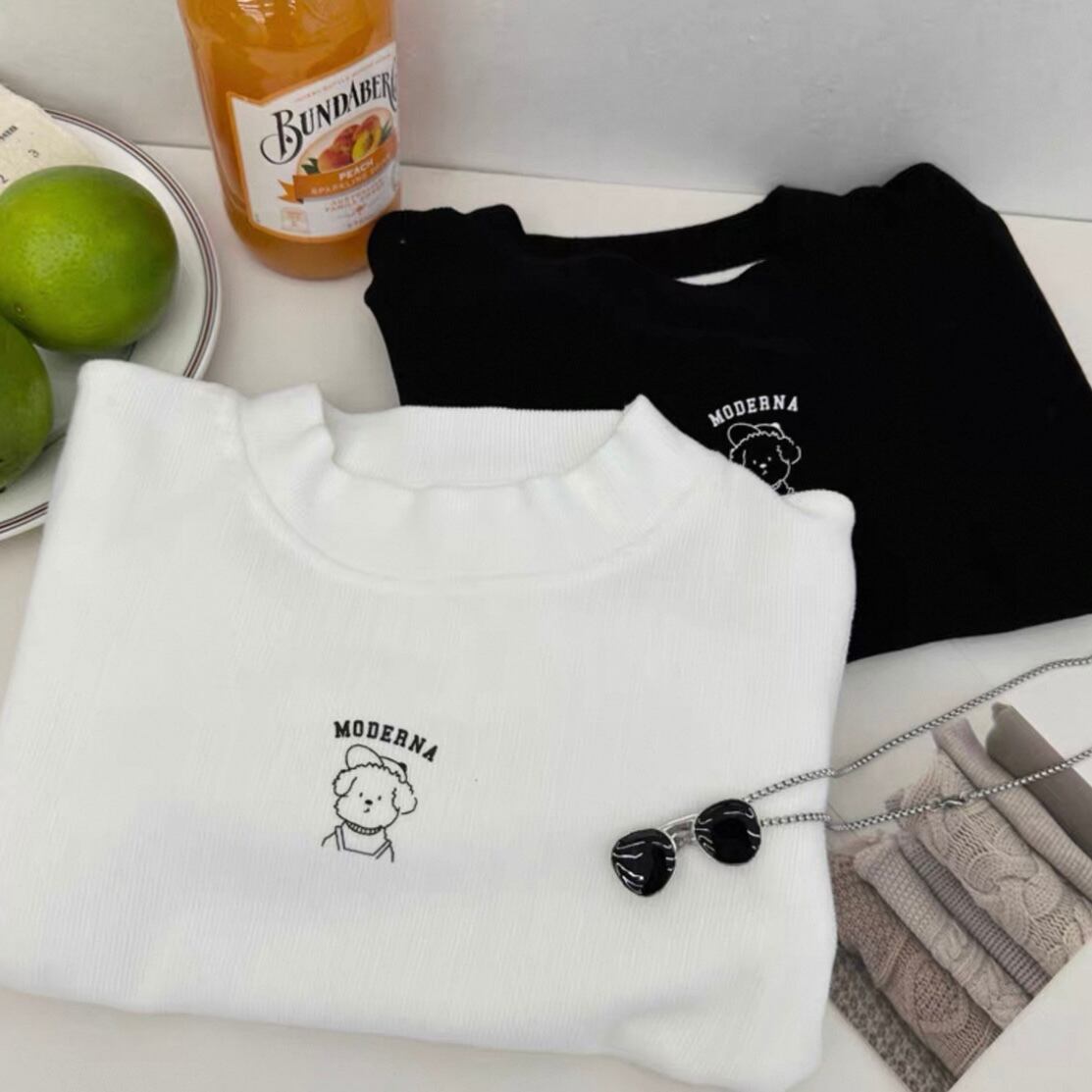 犬のワンポイントが目を惹くハイネックTシャツ