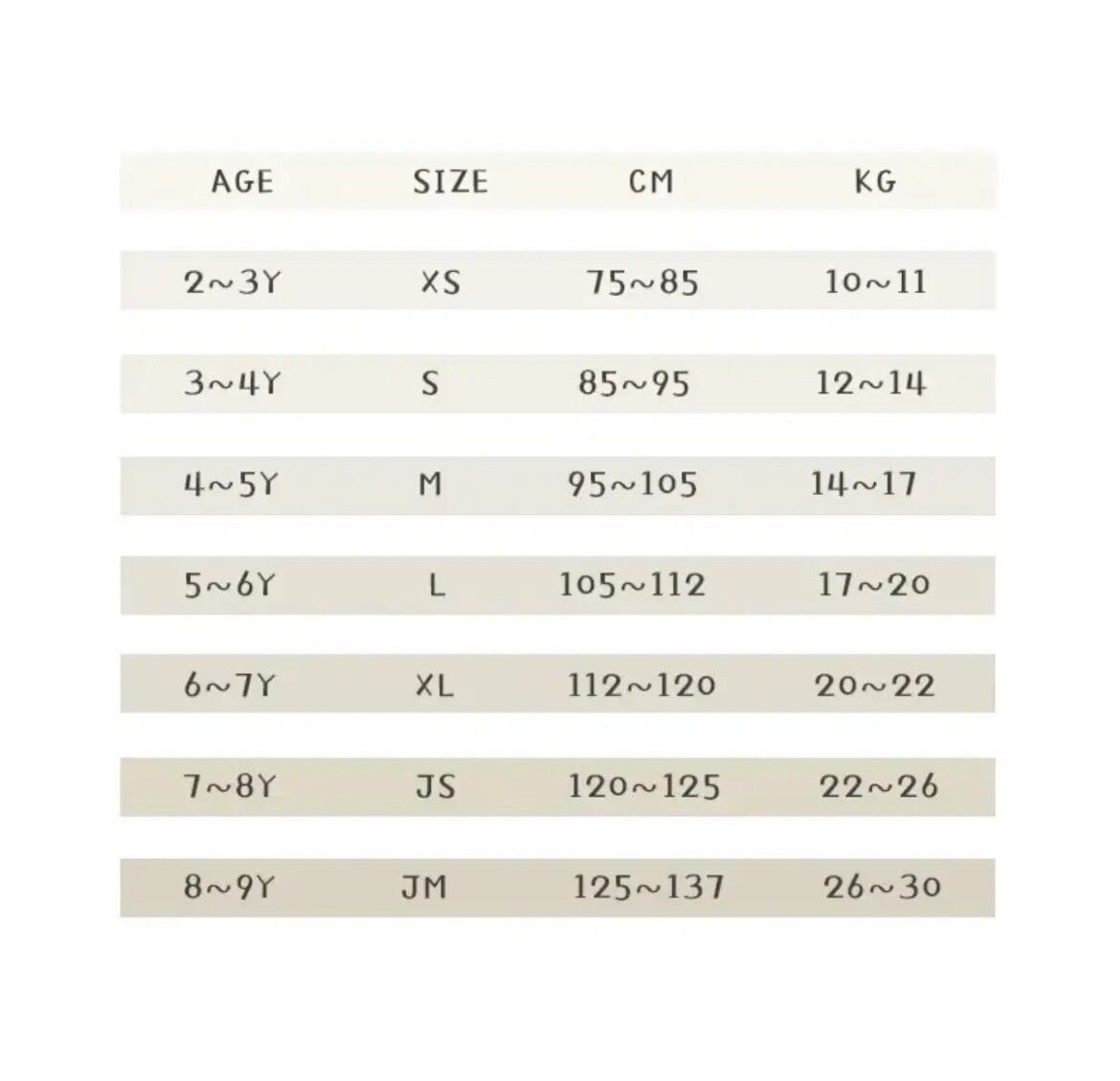 JM 125~137cm +300円